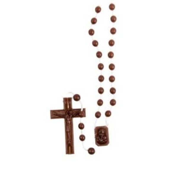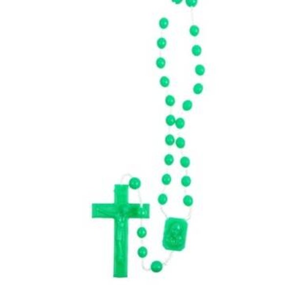 Chapelet sur corde grains en plastique Ø 5 mm, longueur au cœur 27 cm, croix avec Christ.